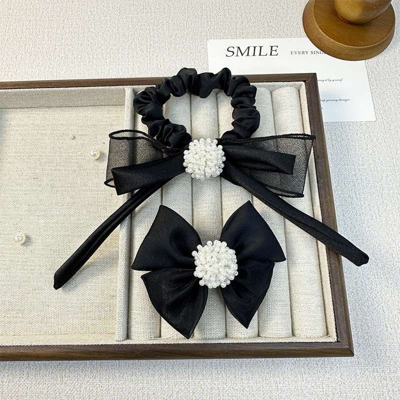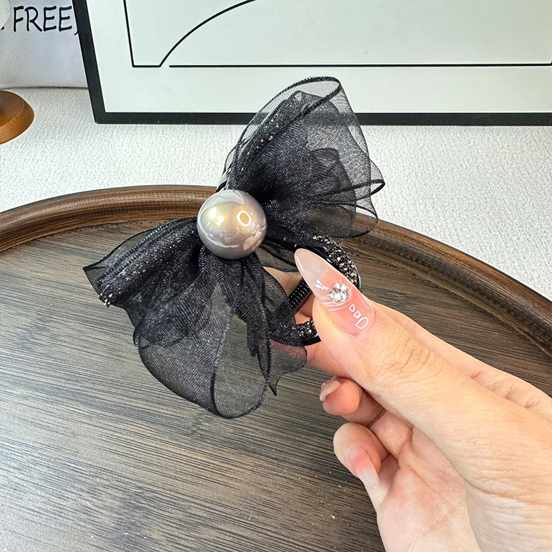 Small fragrance style all-match temperament hair tie High stretch hair band female organza bow top clip pearl flower side clip
